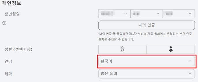 한국어 설정