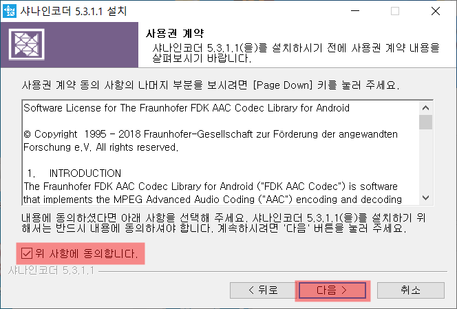 실행 후 다음버튼을 눌러 약관에 동의 후 원하는 곳에 설치합니다.