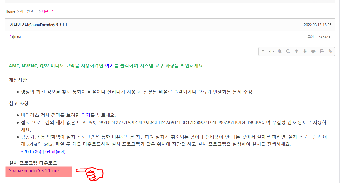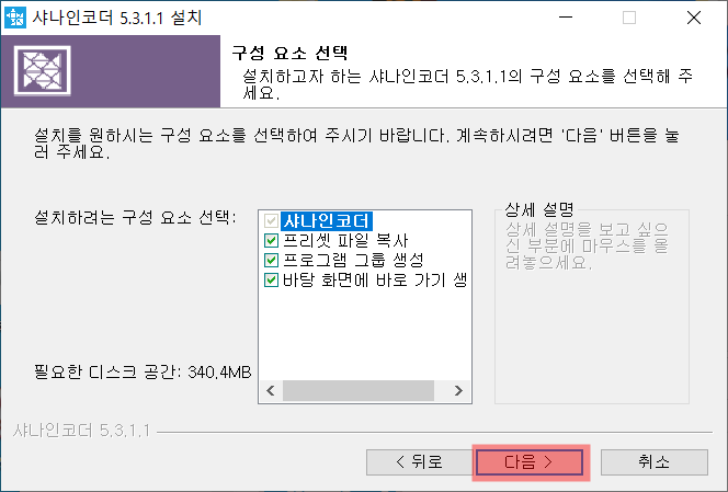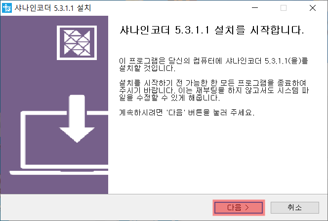 설치가 완료되었으면 바탕화면에 샤나인코더를 실행합니다.