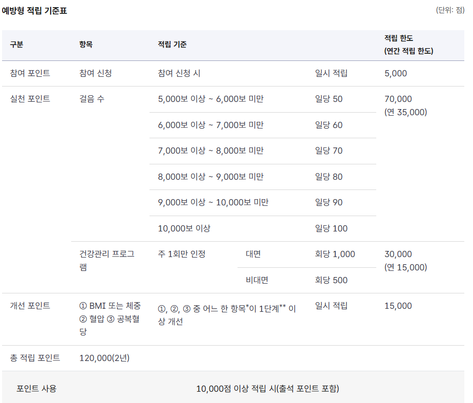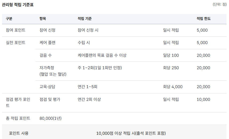 건강생활실천지원금제 포인트 적립 기준
