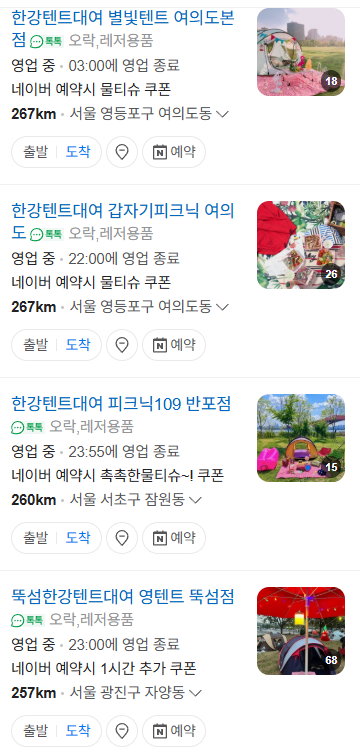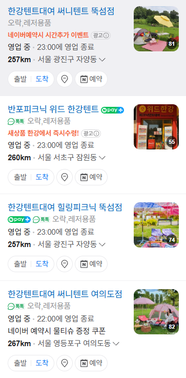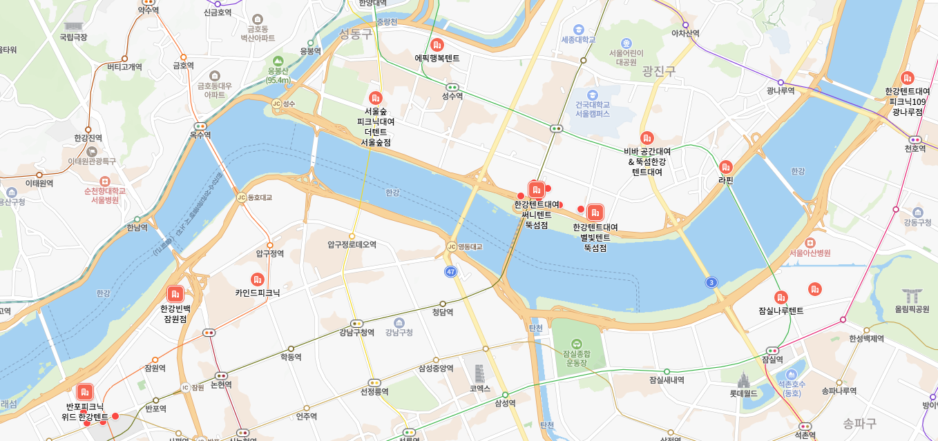한강 텐트 대여업체 위치, 전화번호, 가격