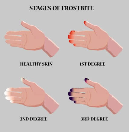 손상받는 정도는 노출 된 추위 정도나 얼어있는 시간과 직접적인 관계가 있다.