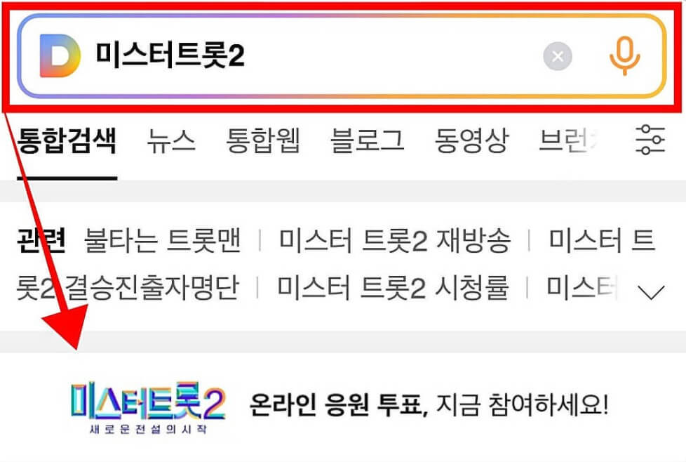 다음 웹사이트 미스터트롯2 투표하기